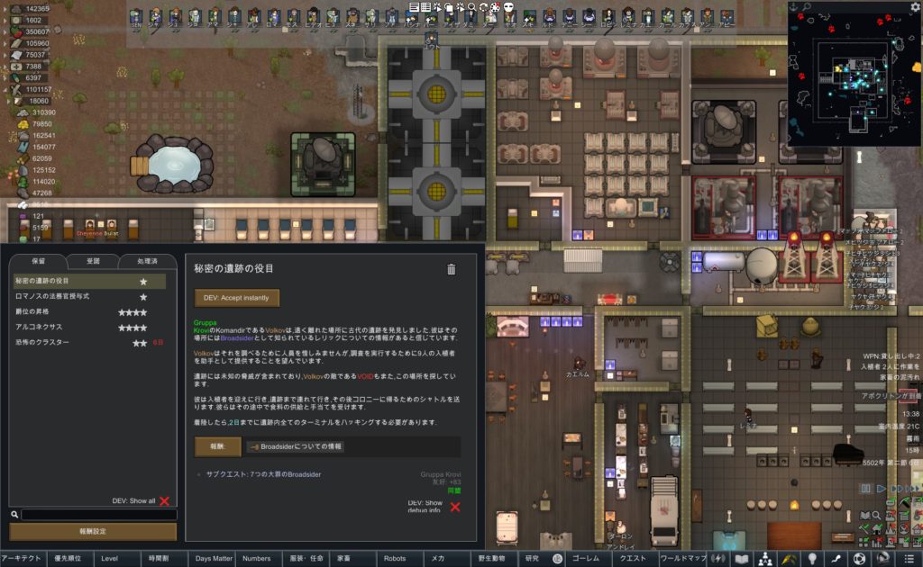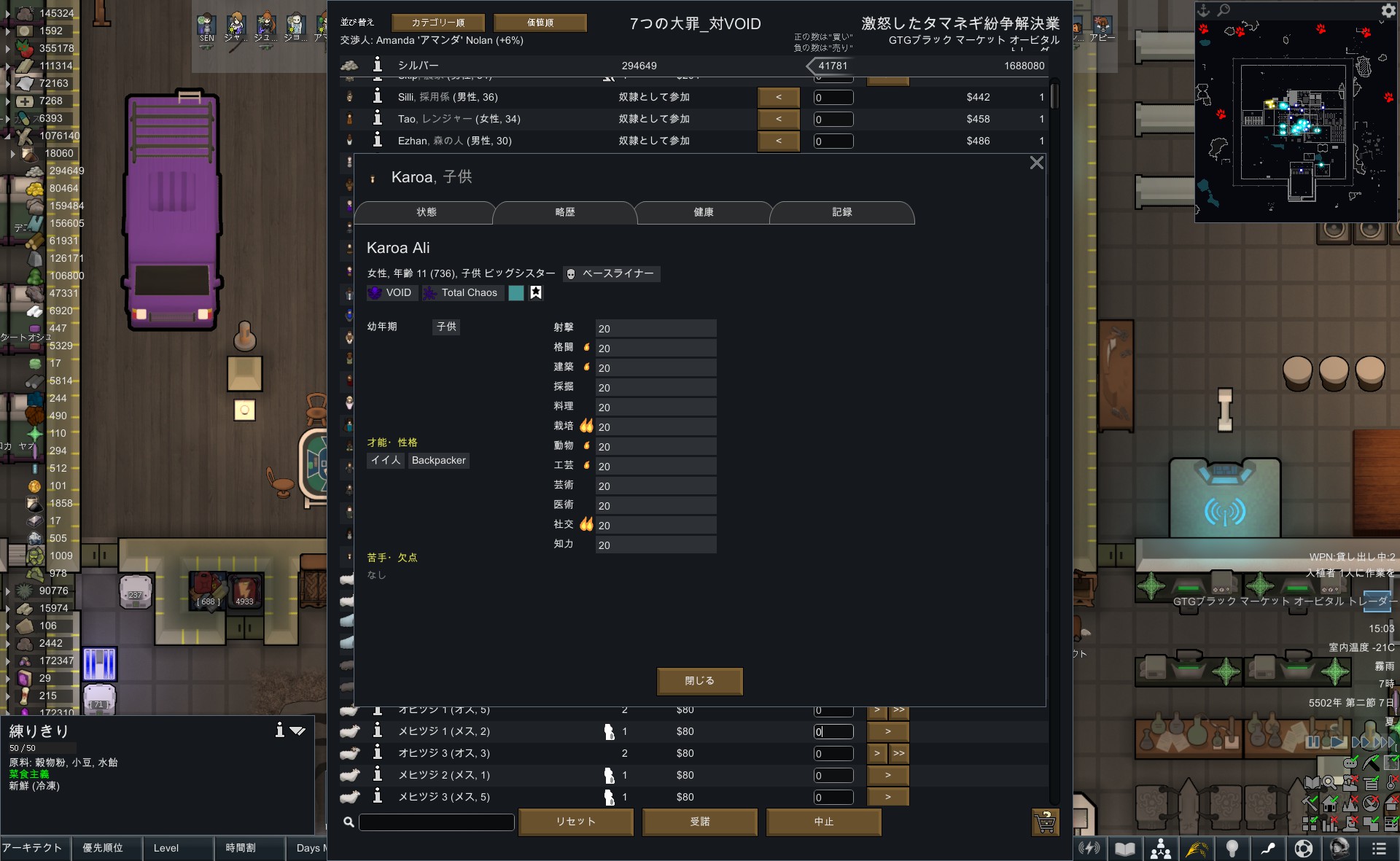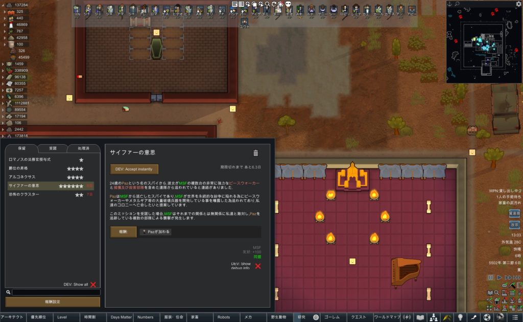 RimWorld レリック探索 VOID派閥の子供 国境なき軍隊スパイ 130万シルバー 大量インプラント 情報戦 豊臣秀吉一夜城