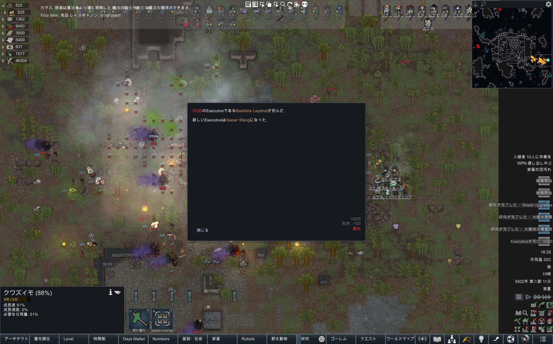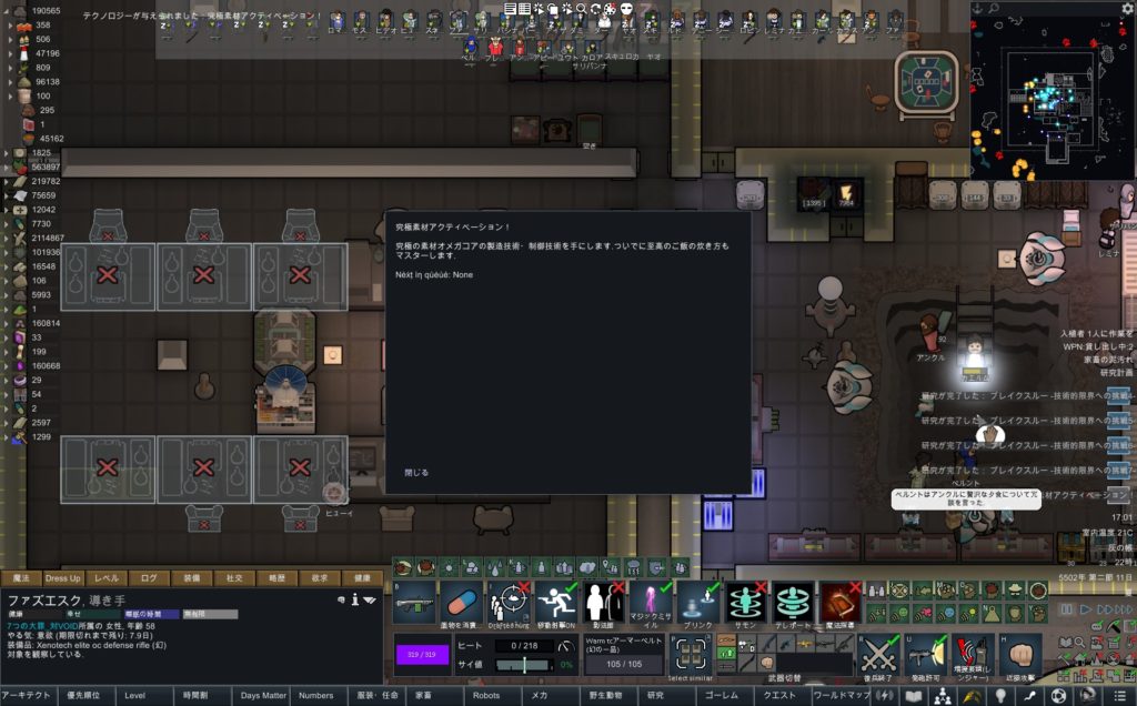 RimWorld VOID派閥拠点攻略 オメガコア技術完成 最終作戦 豊臣秀吉一夜城 エンパス魔法 ユグドラシル武器 研究AI亜人格コア 最終決戦